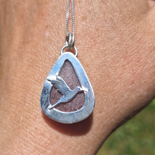 Pendentif iolite rose et colibri
