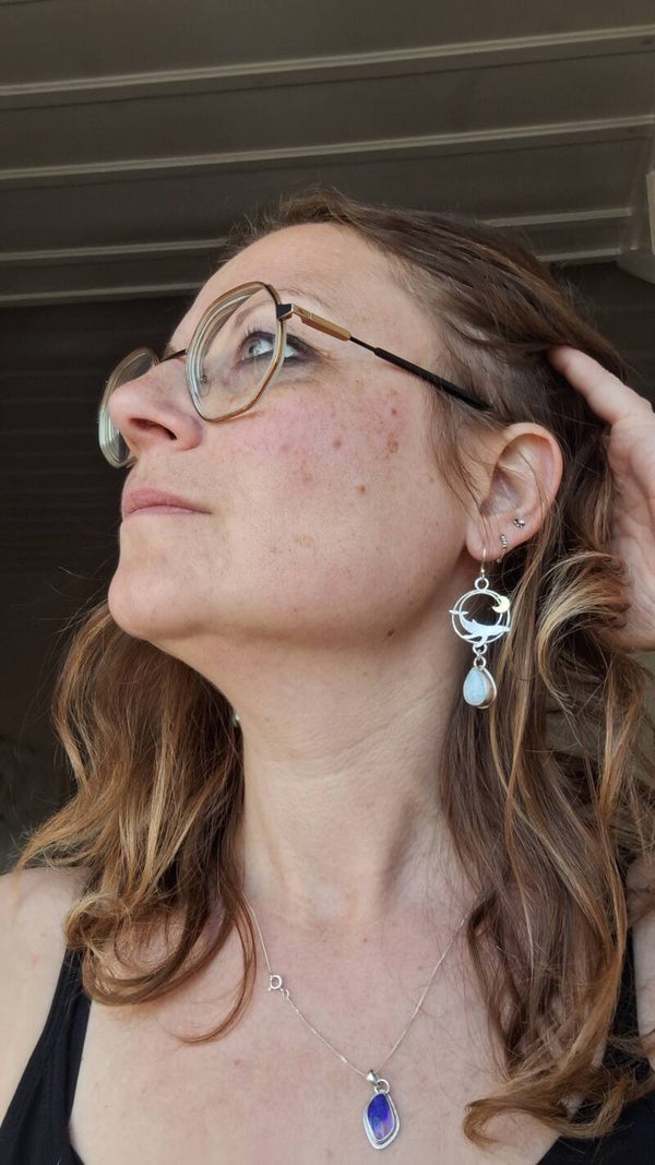Le tout est entièrement réalisé main en argent 925 avec des lunes en laiton.