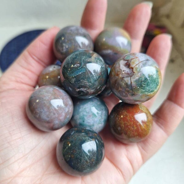 Ces mini sphères en jaspe Océan sont juste sublimes.