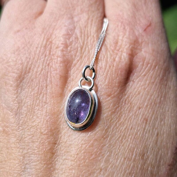 Petit pendentif fait main dans notre atelier avec une belle tanzanite.