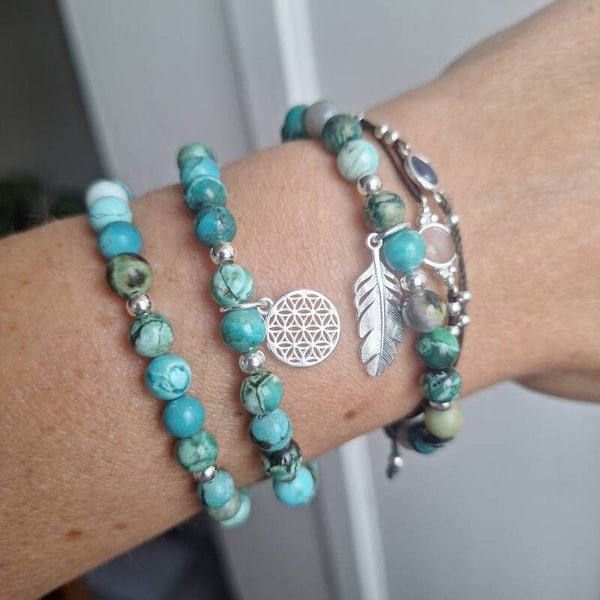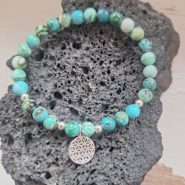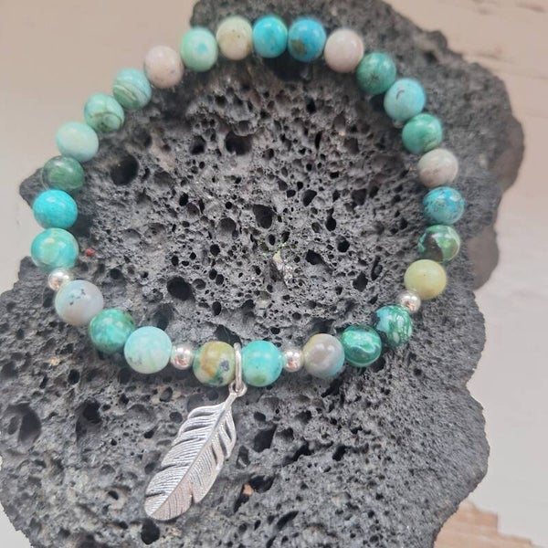 Bracelet monté sur élastique avec des perles en merveilleuse opale bleue du Congo