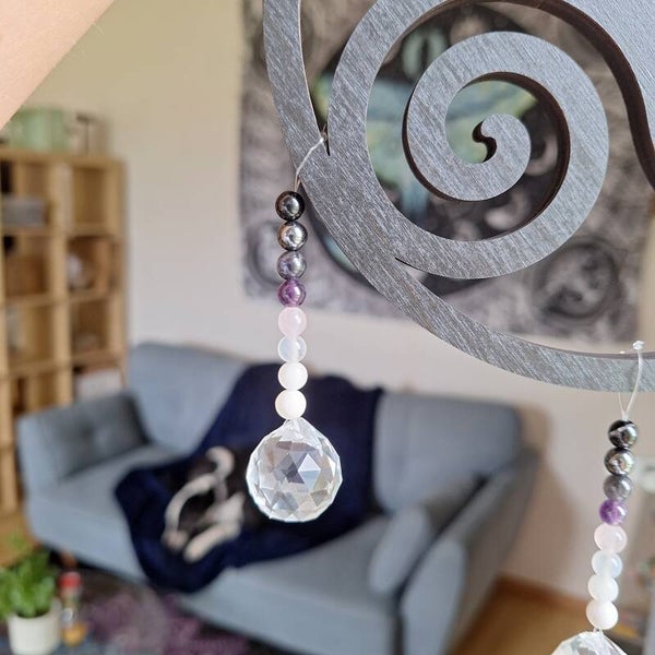 Pierres utilisées : tourmaline, hématite, iolite, améthyste, quartz rose, agate, jadéite blanche, howlite