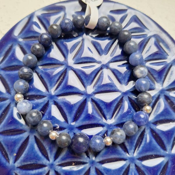 Bracelet monté sur élastique avec sodalite naturelld et argent 925.