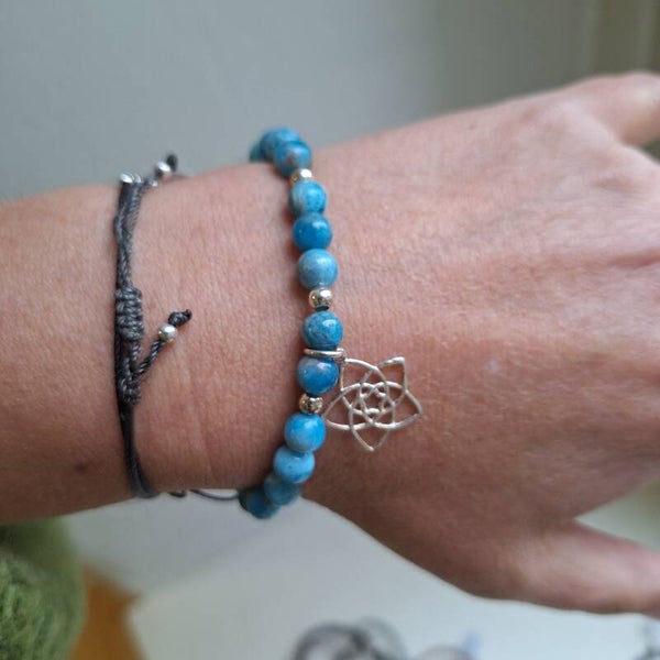 Bracelet monté sur élastique avec apatite claire et argent 925.