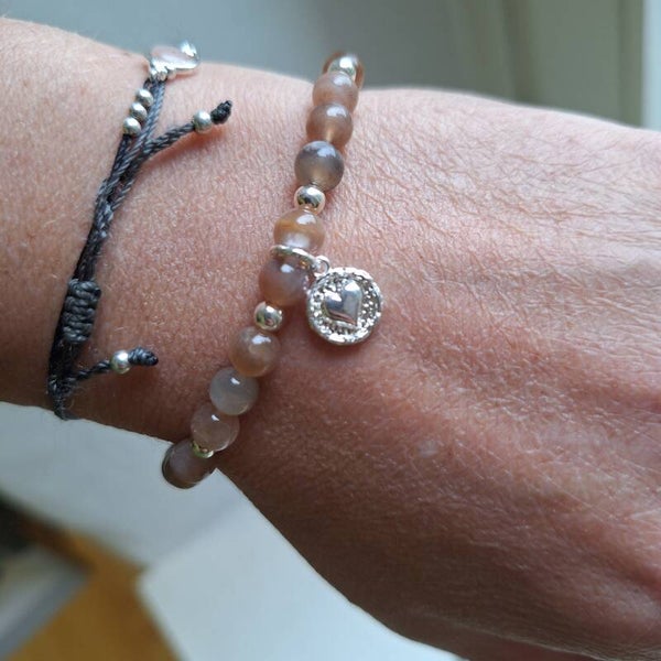 Bracelet monté sur élastique avec pierre de lune et argent 925.