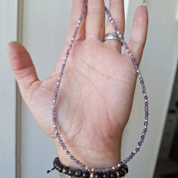 Collier court en perles à facettes 3mm avec perles et fermoir en argent 925.
