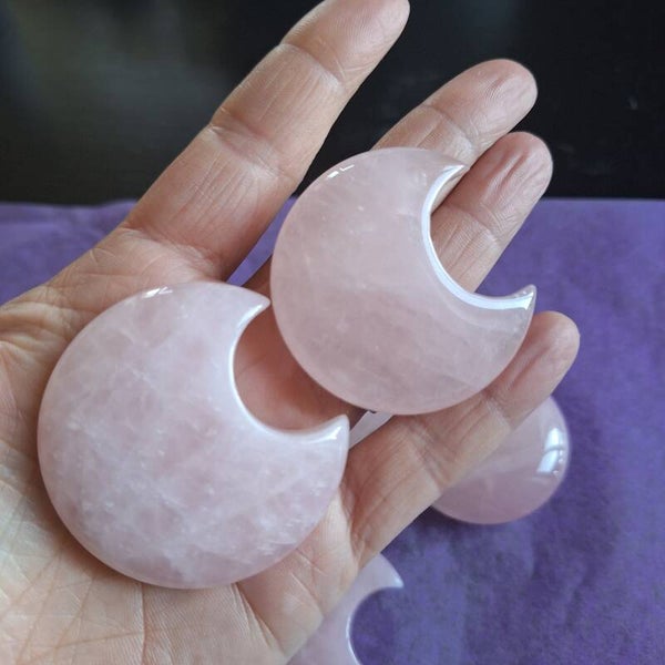 Jolies lunes en quartz rose. Environ 4.5cm